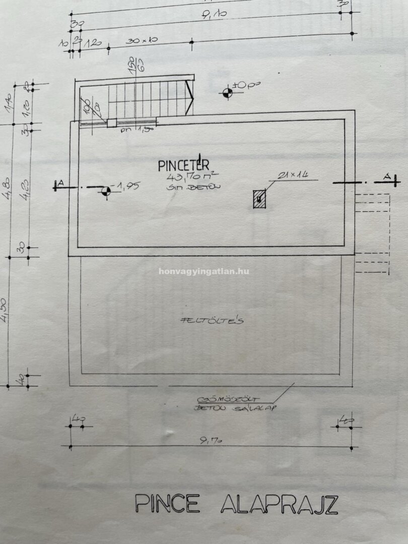 Az egész ház alatti pincében tároló, kazánház és garázs van kialakítva.