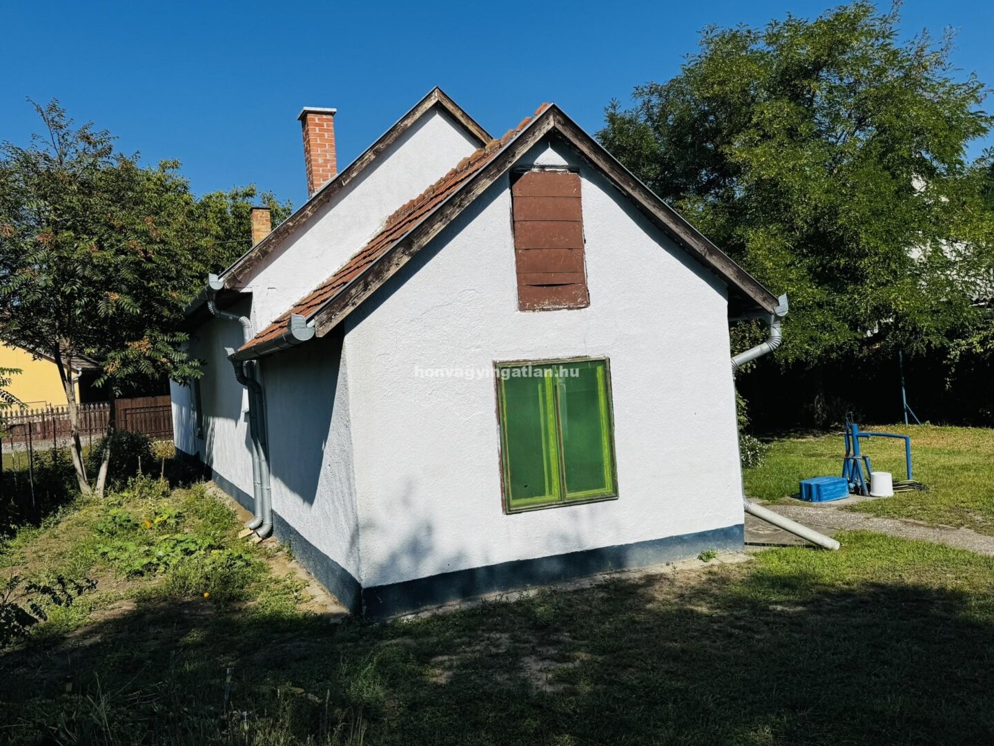 A fűtés gázkonvektorral megoldott. Fúrt kút a kert öntözéséhez.