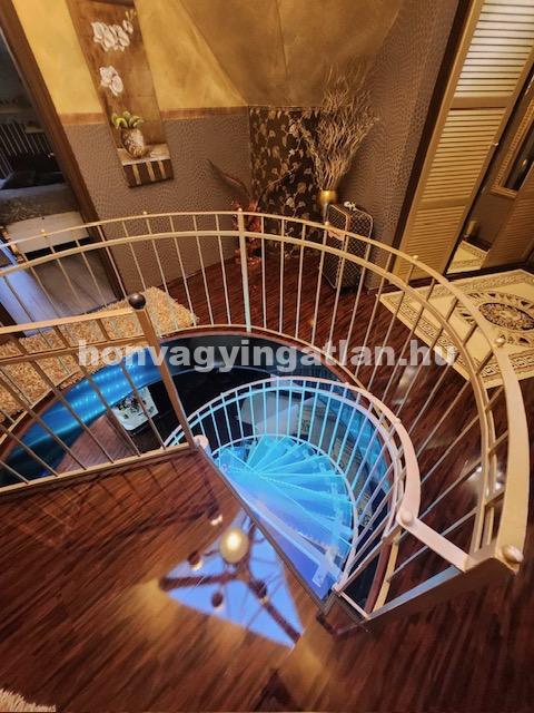 A prémium felszereltségű ház teljes berendezéssel együtt kerül értékesítésre. Az extrák közül néhány kiemelés: jakuzzi, fedett medence, videó-, hang- és fénytechnika, igényes burkolatok, prémium minőségű beépített bútorok, vendégház, külső bár és konyha, különleges üveglépcső, egyedi gyártású panorámaablakok, hajókikötő–stég, öntözőrendszer, valamint számos további különleges megoldás. ✨Ez az ingatlan egy valódi kuriózum Ráckeve ingatlanpiacán.