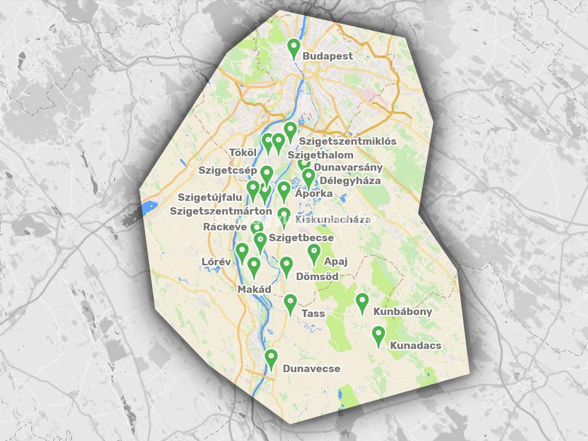 Szolgáltatásaink az alábbi településekre terjednek ki: