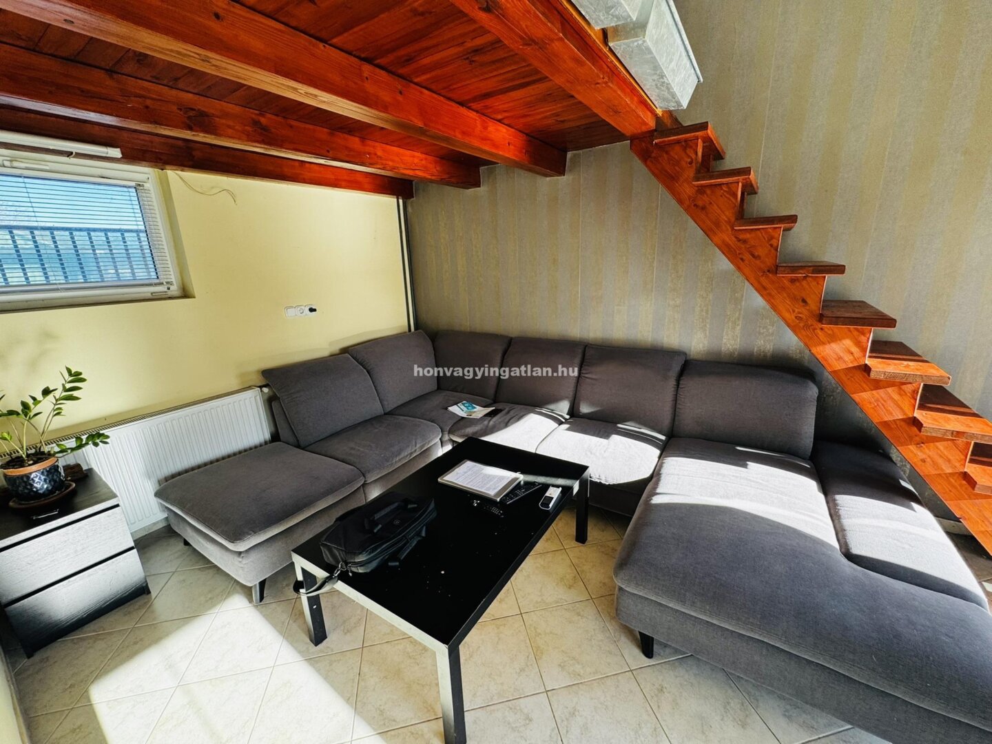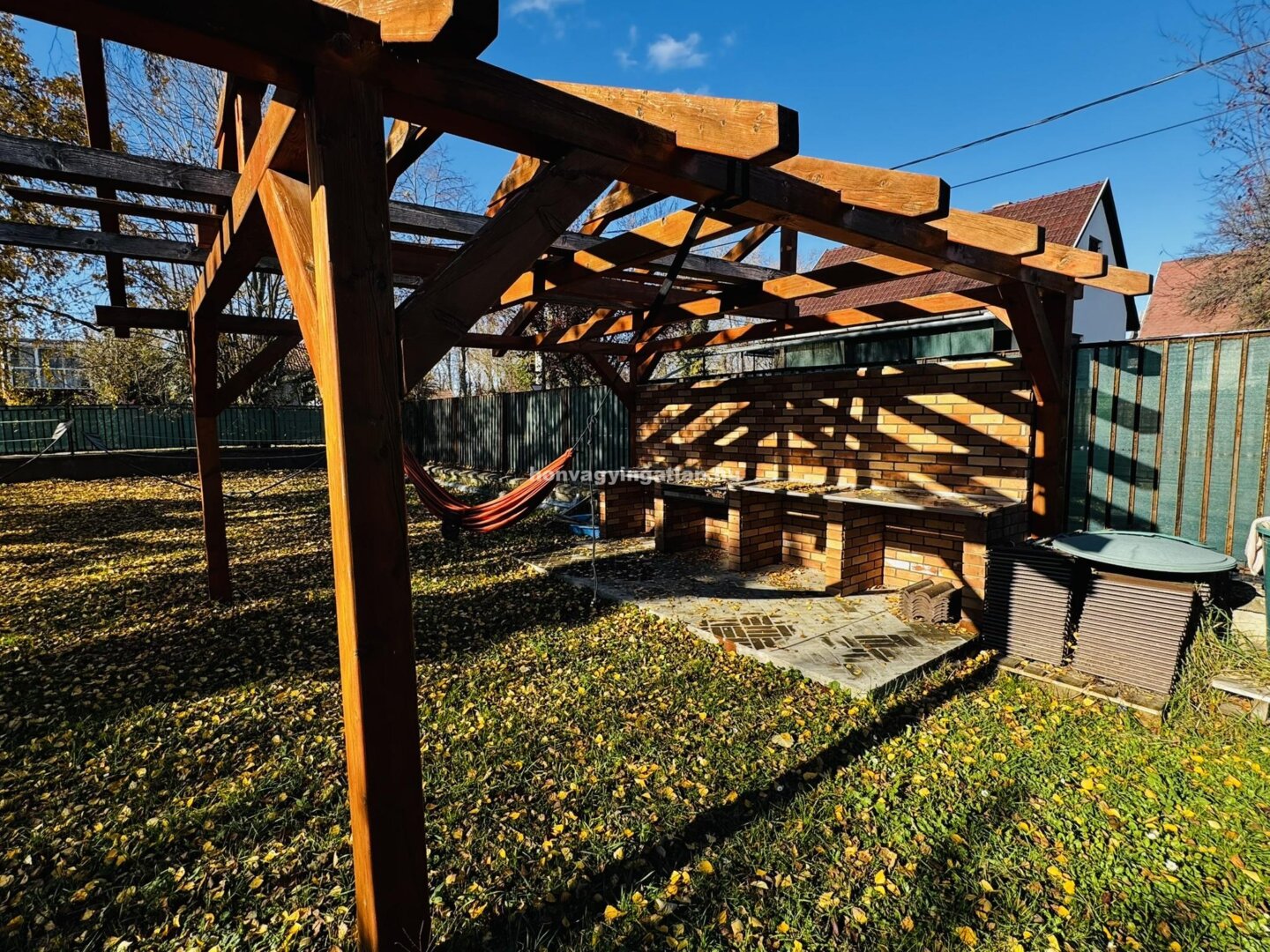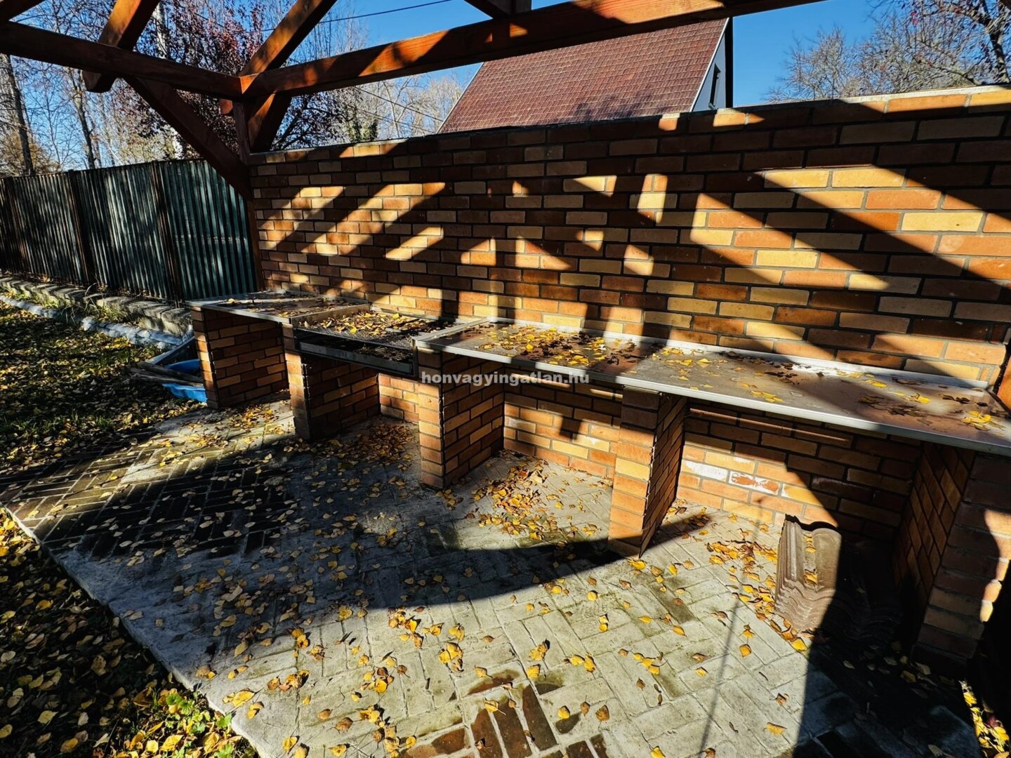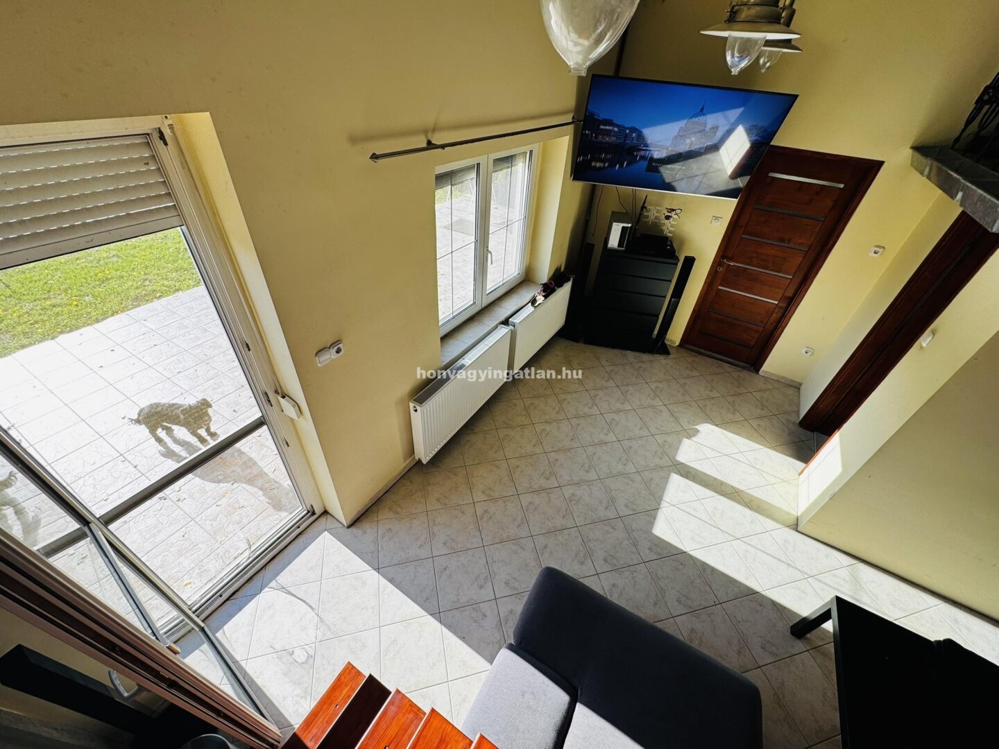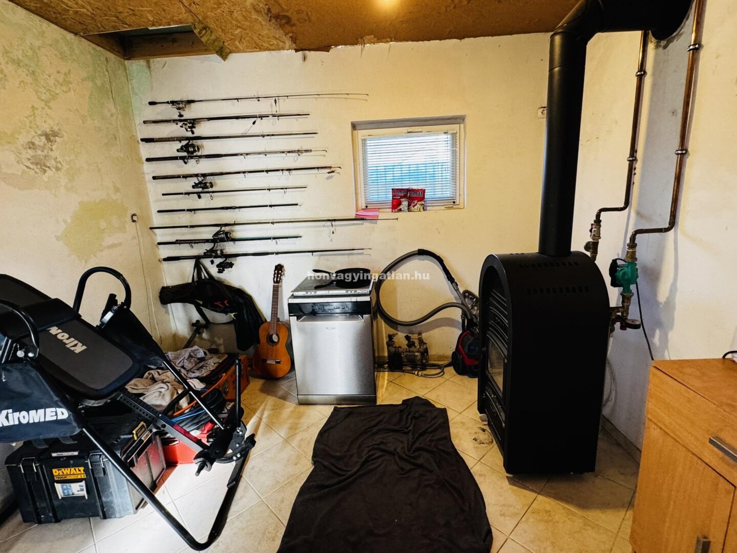 A földszinti elrendezés része egy hangulatos nappali galériával (hálószobával), egy zuhanyzós fürdőszoba-WC, valamint a nappaliból nyíló külön bejáratú konyha-étkező, ahol vegyestüzelésű kazán is található. Az udvar rendezett, parkosított, itt kapott helyet egy fedett terasz váza és egy épített kerti sütögető-konyha, amelyek még kellemesebbé teszik a ház környezetét.