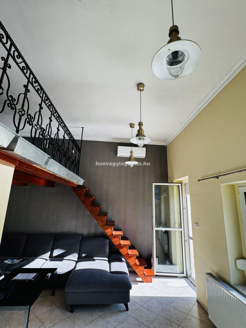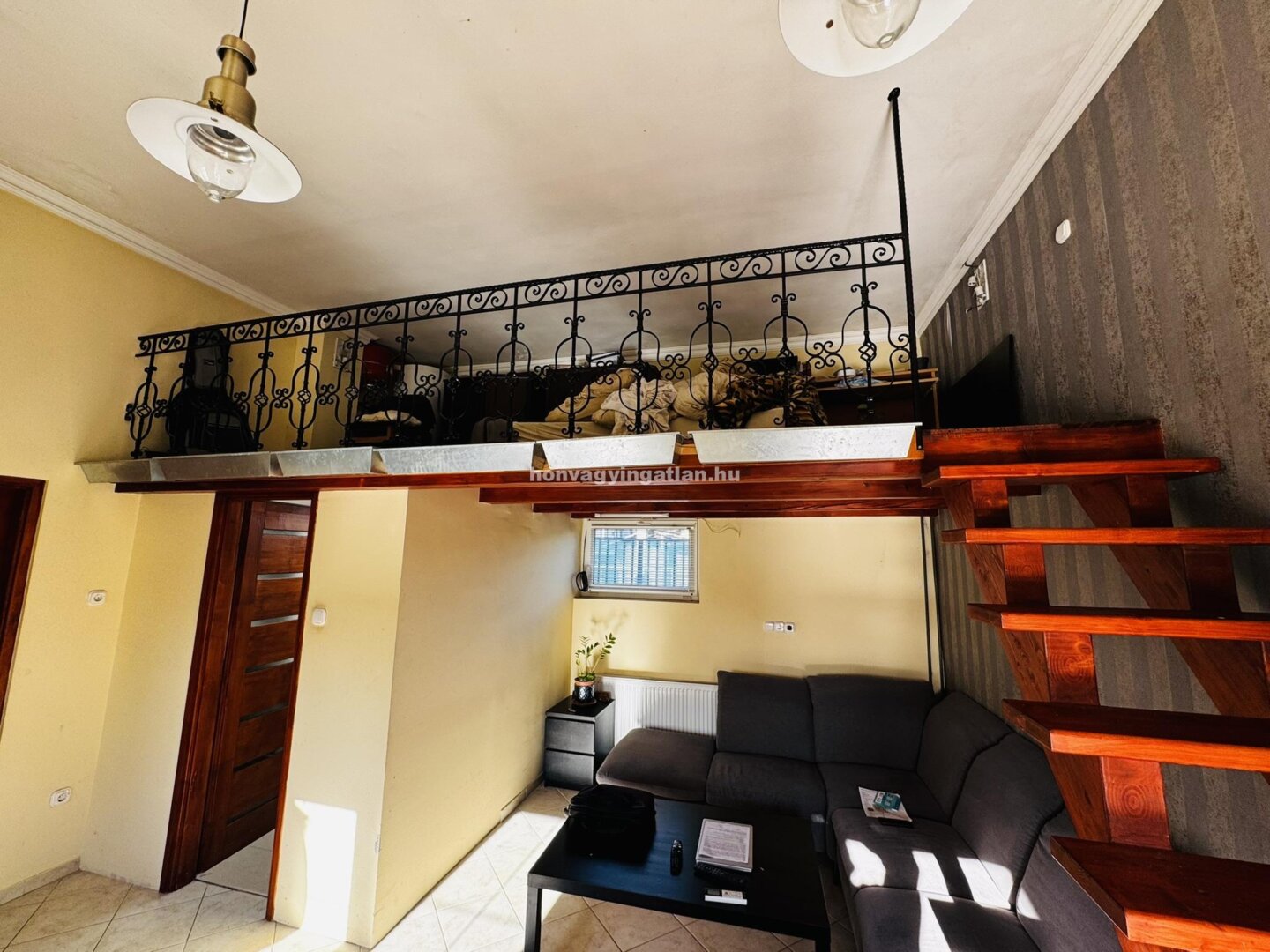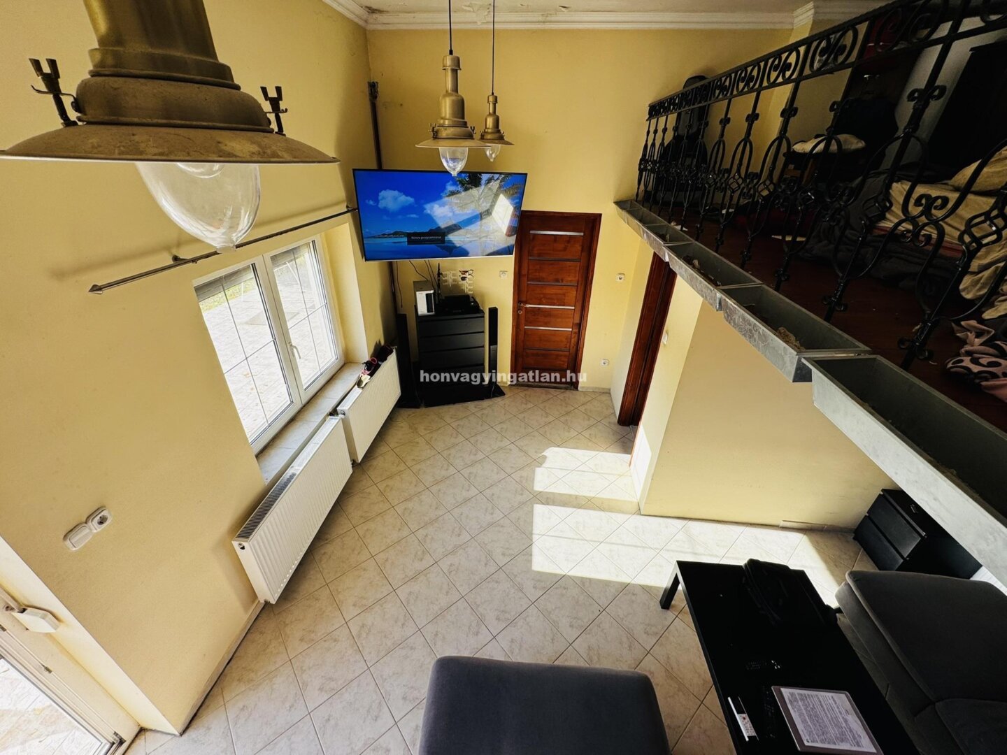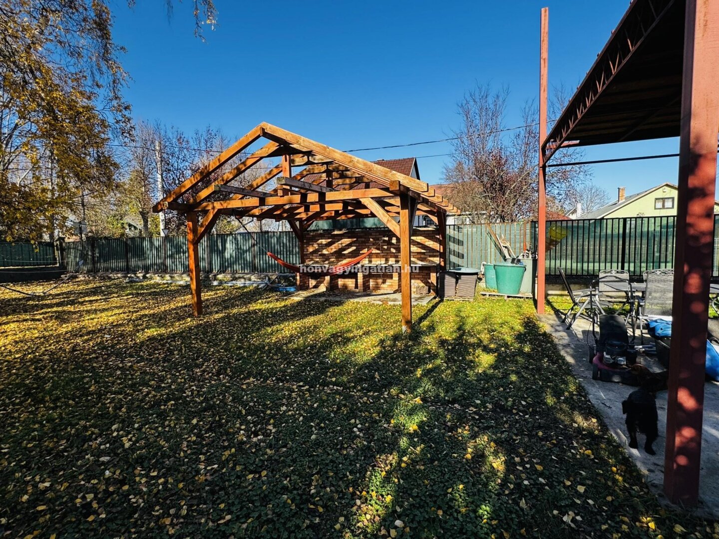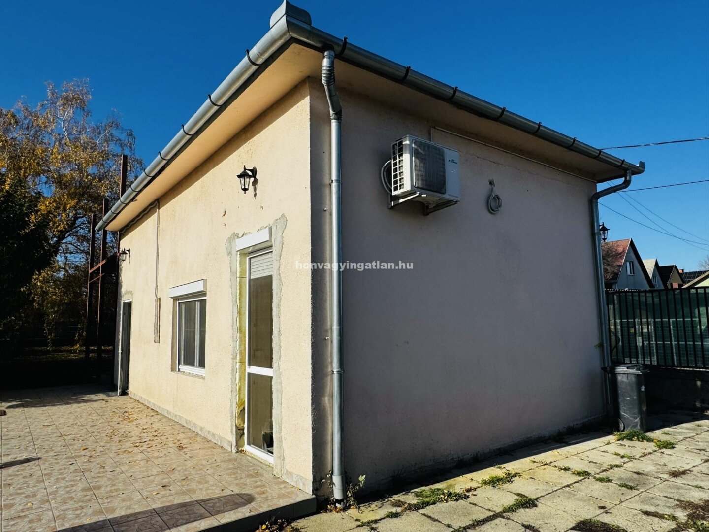 A földszinti elrendezés része egy hangulatos nappali galériával (hálószobával), egy zuhanyzós fürdőszoba-WC, valamint a nappaliból nyíló külön bejáratú konyha-étkező, ahol vegyestüzelésű kazán is található. Az udvar rendezett, parkosított, itt kapott helyet egy fedett terasz váza és egy épített kerti sütögető-konyha, amelyek még kellemesebbé teszik a ház környezetét.